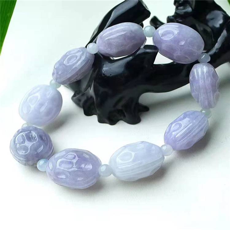 缅甸A货翡翠冰种紫罗兰手链老坑冰糯种紫色阳绿手串男女玉石项链