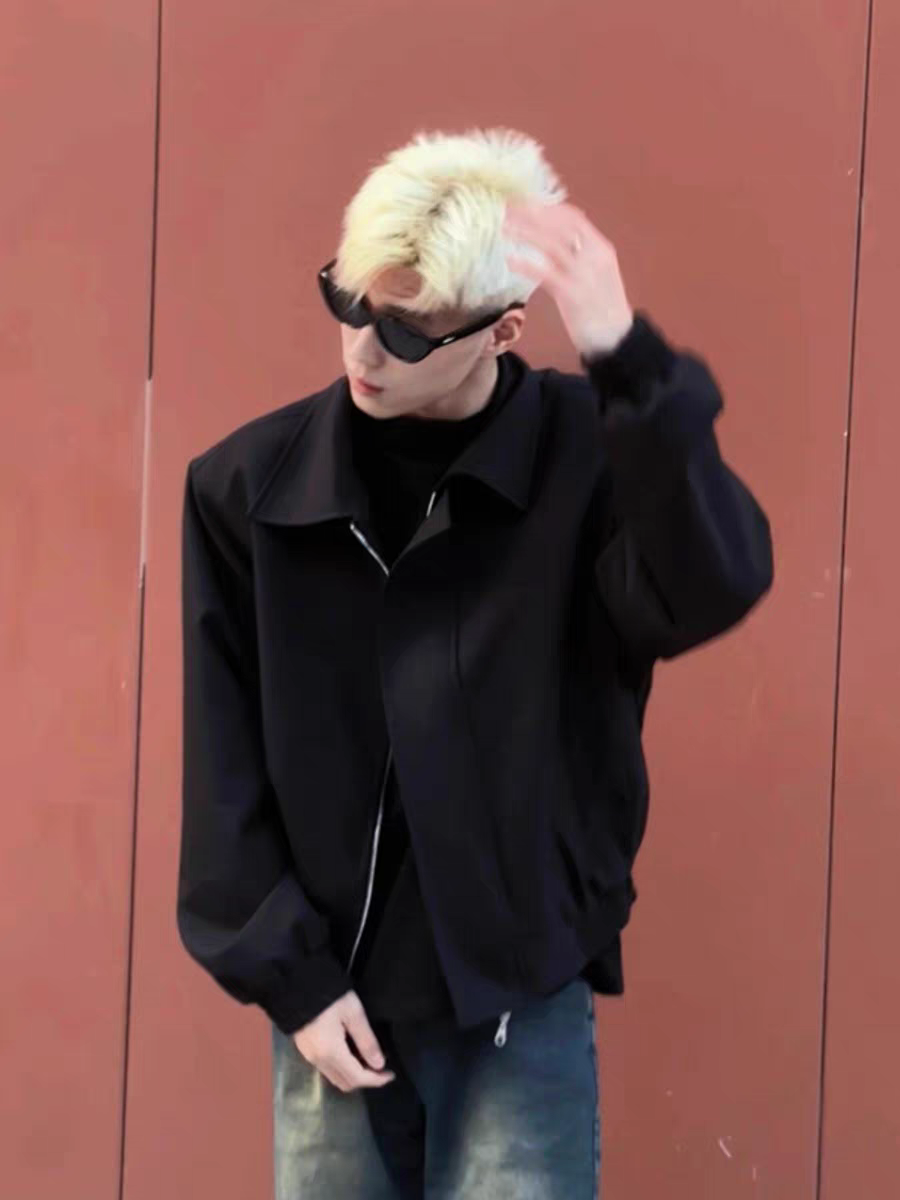 黑色垫肩短款外套男款春秋高级感痞帅美式上衣