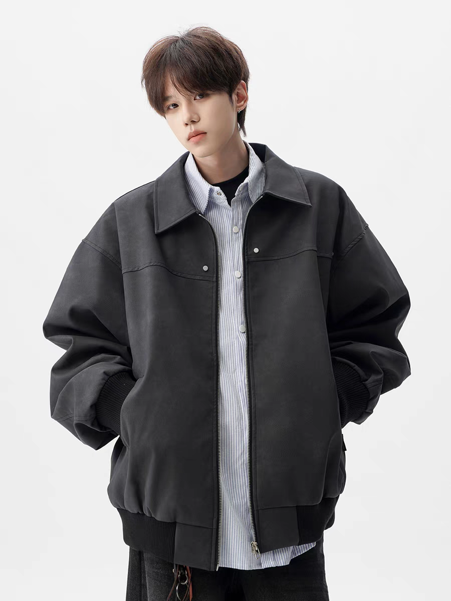黑色垫肩短款外套男款春秋高级感痞帅美式上衣潮牌酷帅飞行员夹克