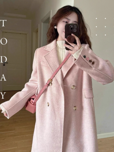 ZOJ手缝羊毛双面绒外套格子大衣女西装新款秋冬毛呢女装