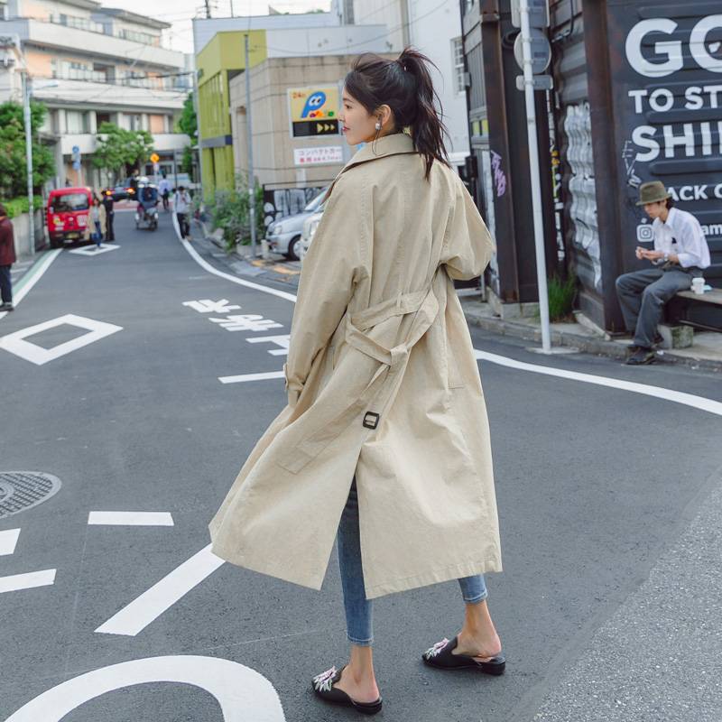 卡其色风衣女中长款学生2018早秋新款韩版bf系带过膝chic外套薄款