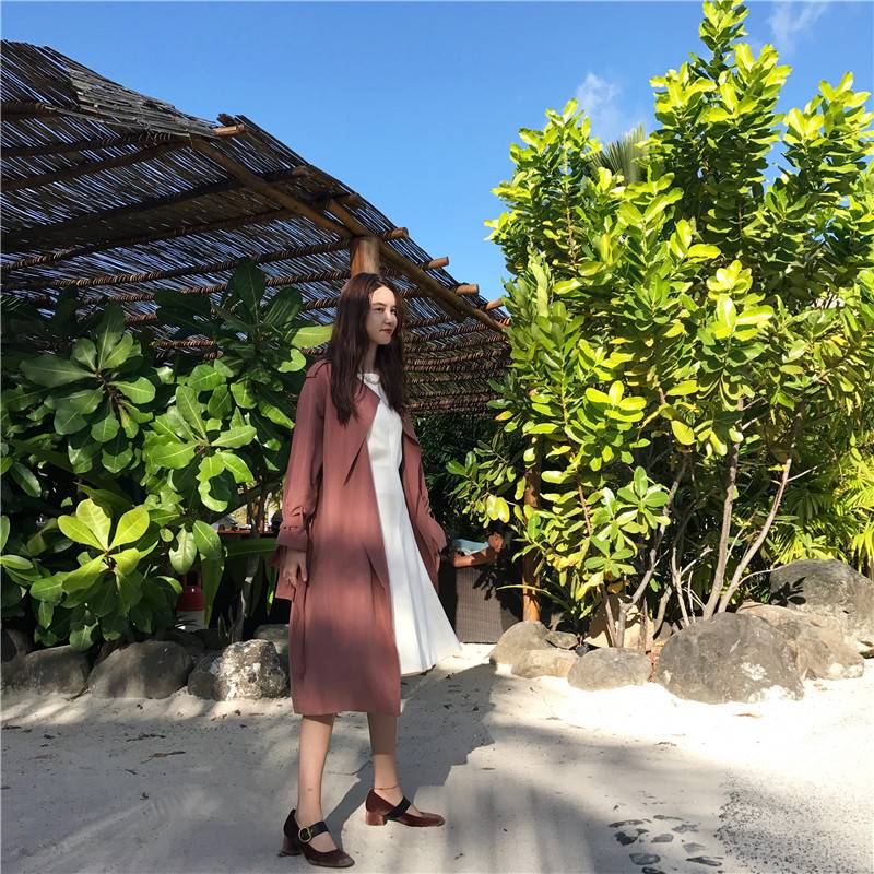 风衣外套女中长款张大奕2018春装新款韩版系带过膝时尚宽松外衣女