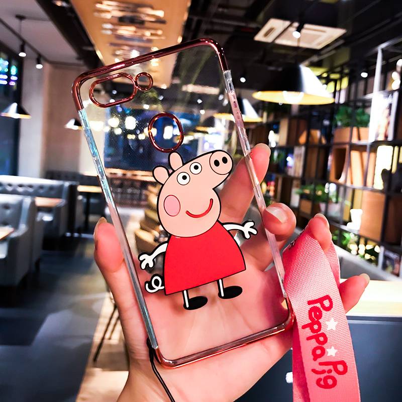抖音社会人r11s佩奇小猪oppor15手机壳透明硅胶挂绳r9splus女情侣