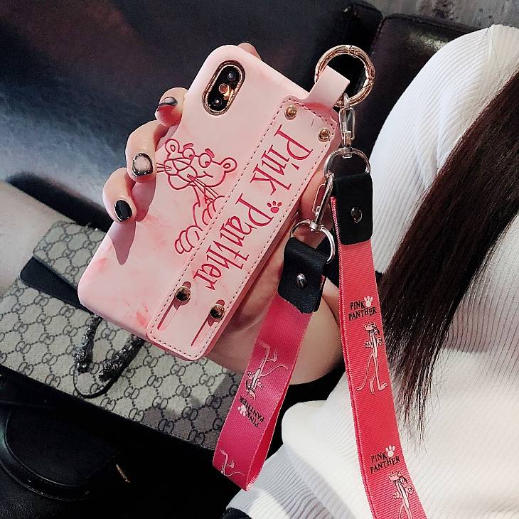 网红粉红顽皮豹oppor15手机壳腕带r11s保护套r9splus挂绳女新款潮