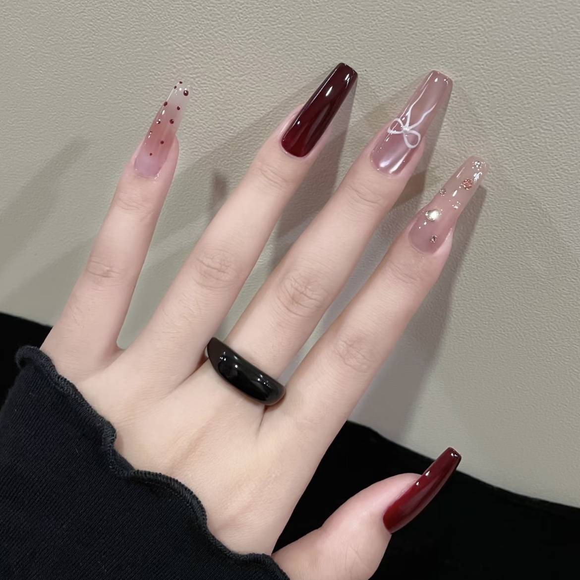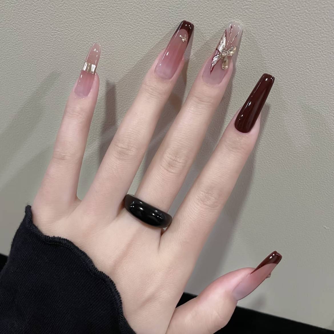 小乔家新款穿戴甲 look♡♩鎏金蝴蝶•敲显白的胡桃夹子红 •