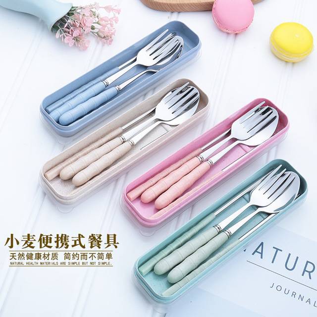 便携式小麦三件套餐具 简约叉勺筷餐具套装