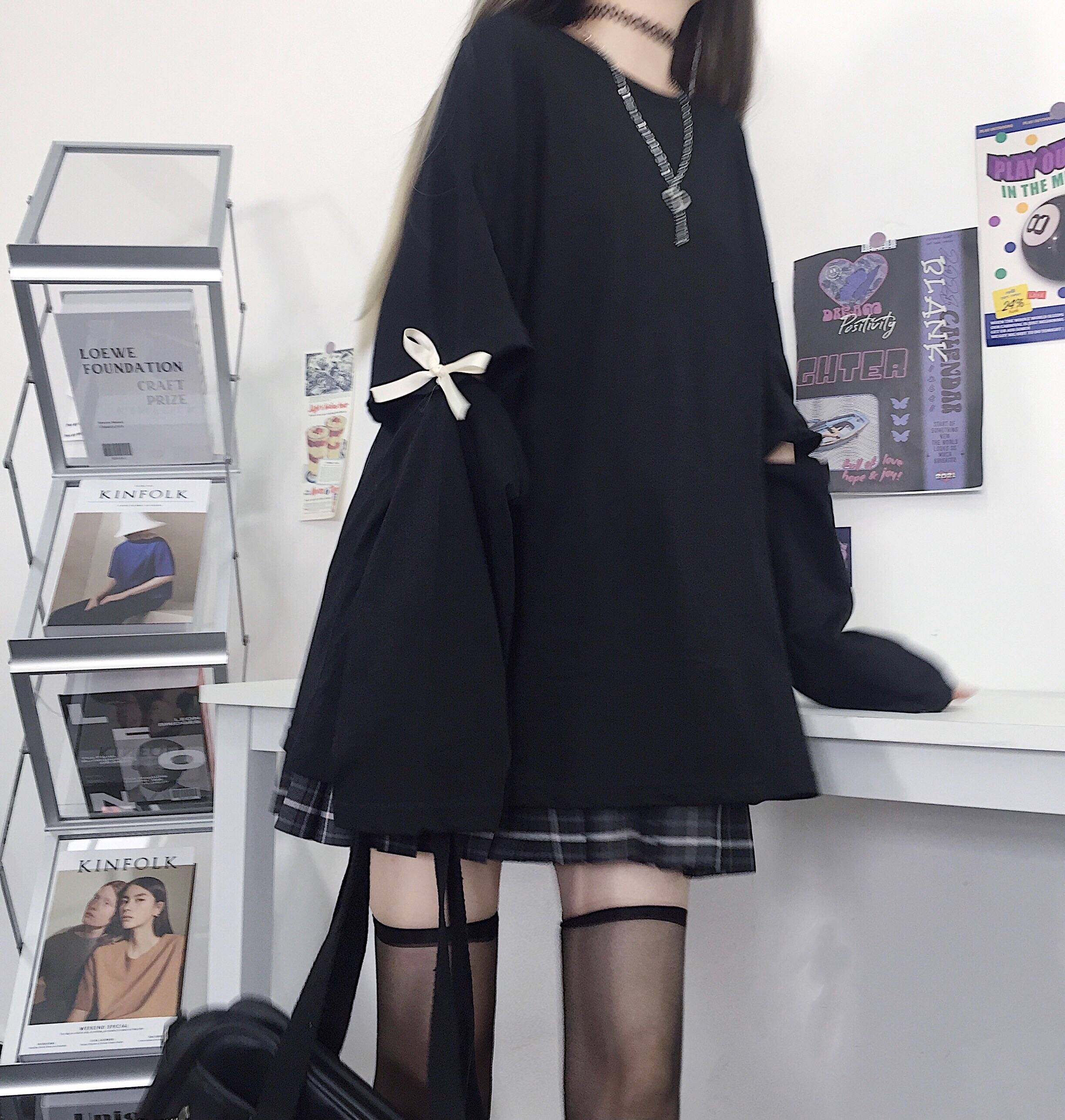 ins春夏季原创两种穿法袖子可拆卸少女感基础百搭蝴蝶结T恤