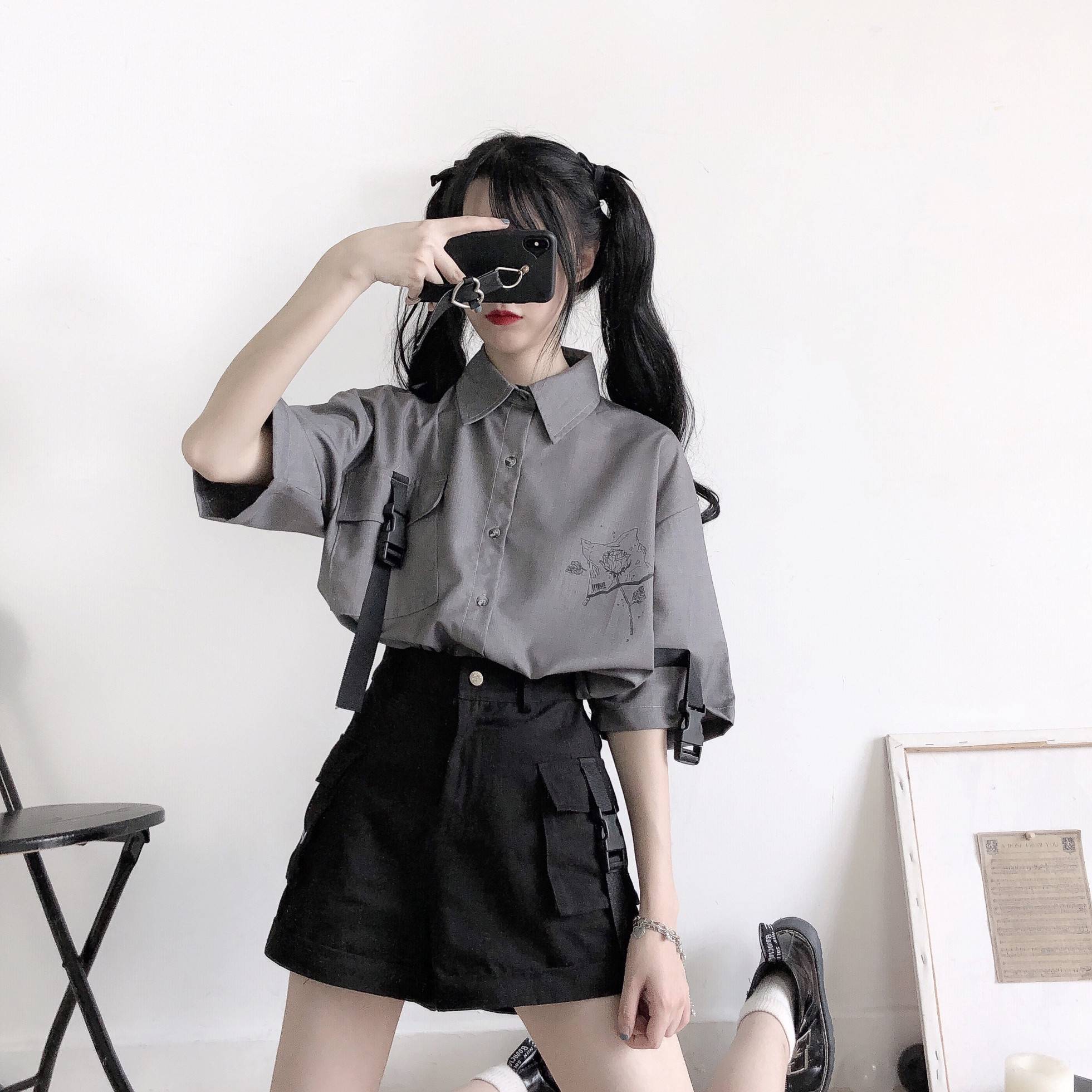 ins冷淡硬妹夏季新品原创少女感基础百搭两色衬衫