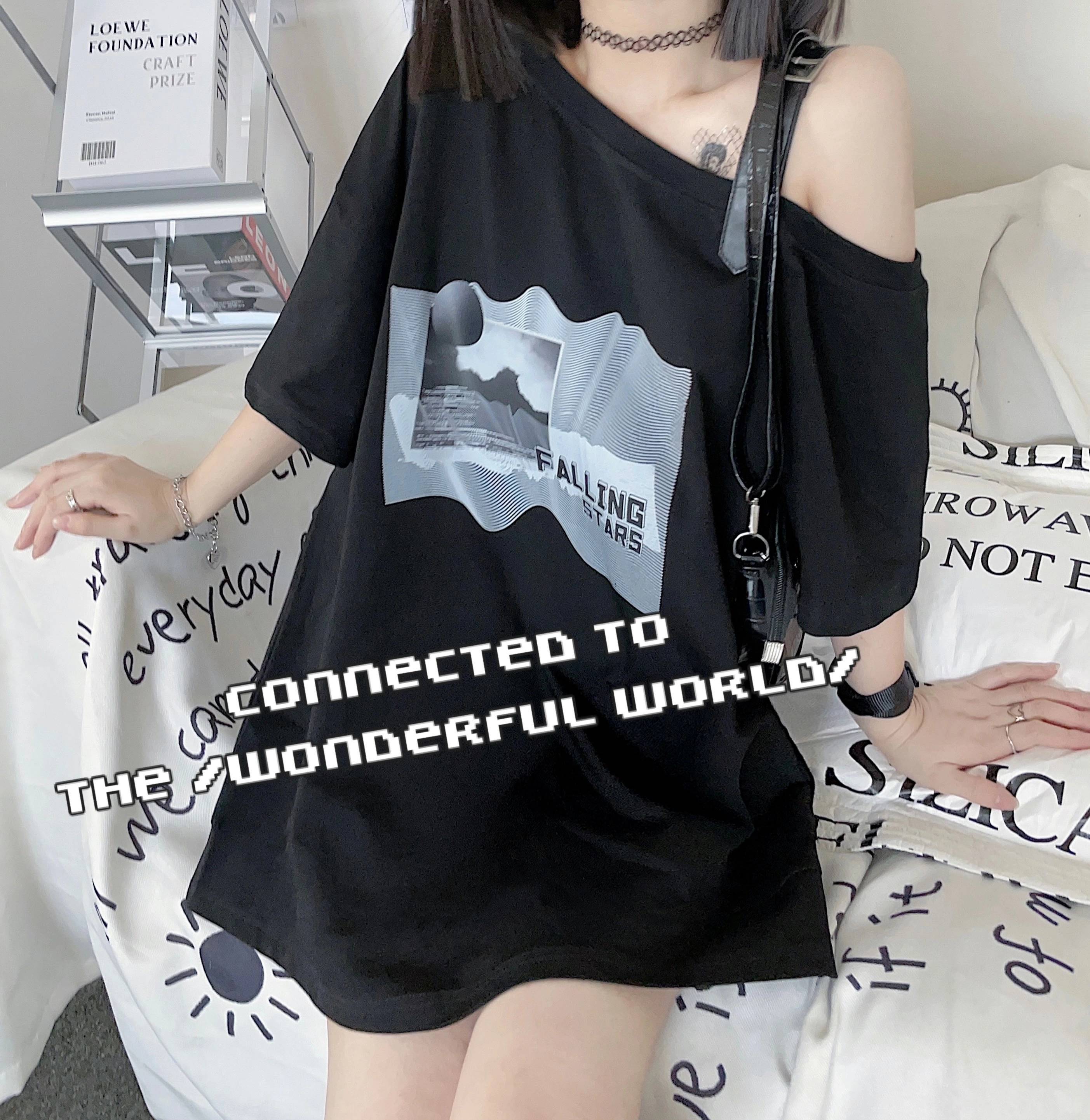 ins夏季新品原创少女感基础百搭字母印花宽松棉T恤