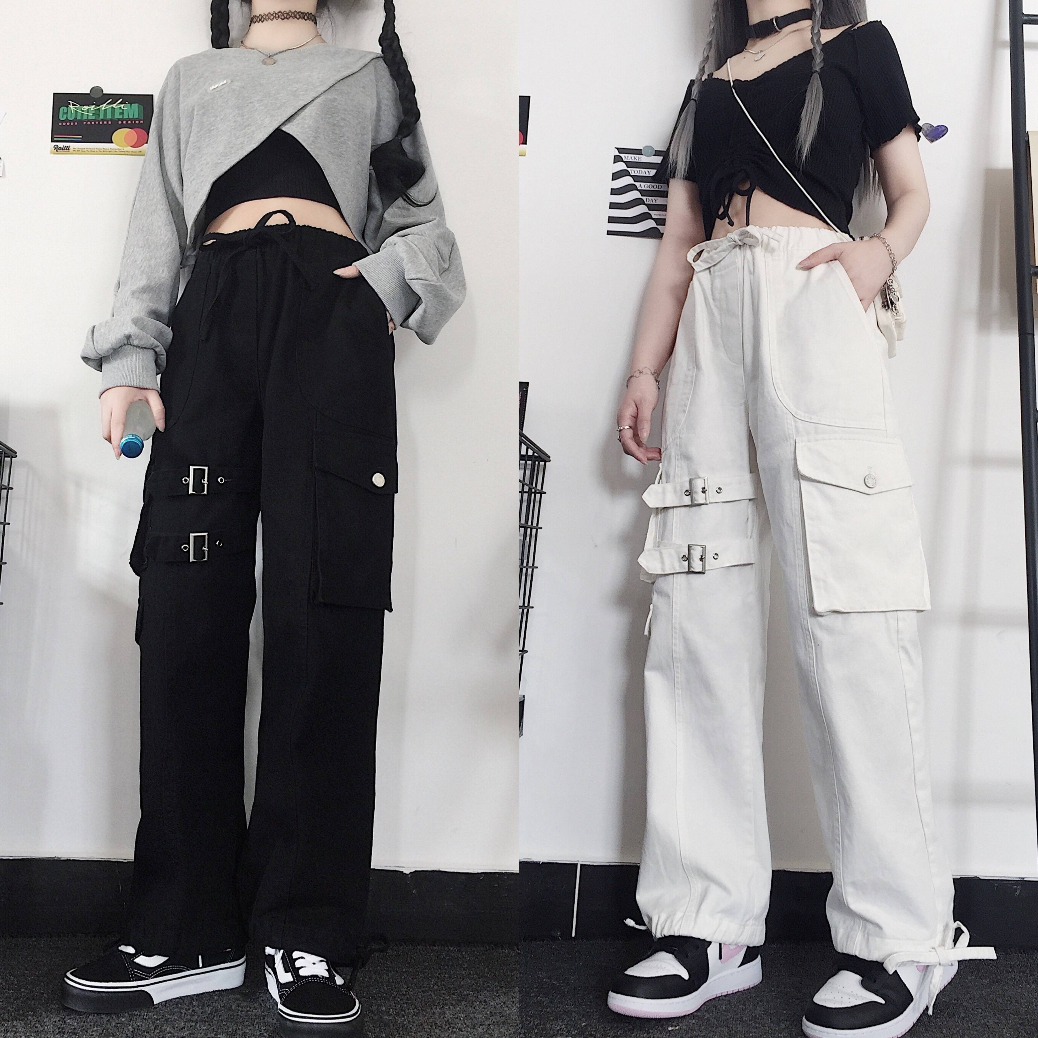 原创2021新款工装风硬妹百搭休闲显瘦高腰直筒裤ins潮
