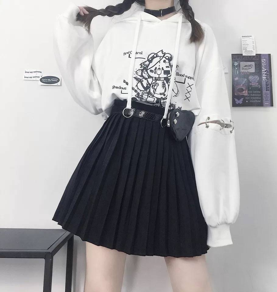 黑色简洁基础款四季百搭原创百褶裙