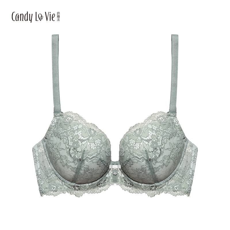 奶糖派分胸型大罩杯内衣大码大胸少女文胸罩65D70E75F告白2海藻绿