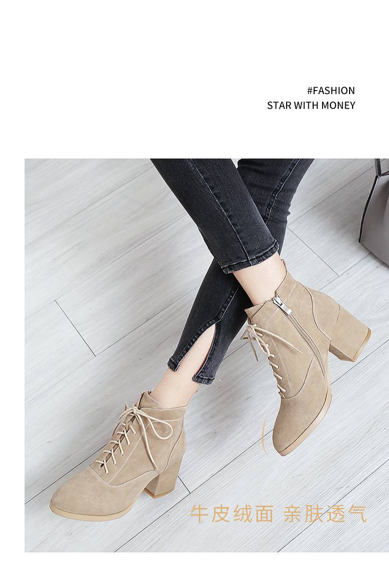 满99减10春秋2018新款马丁靴女英伦风学生韩版百搭冬季高跟短靴女粗跟鞋子