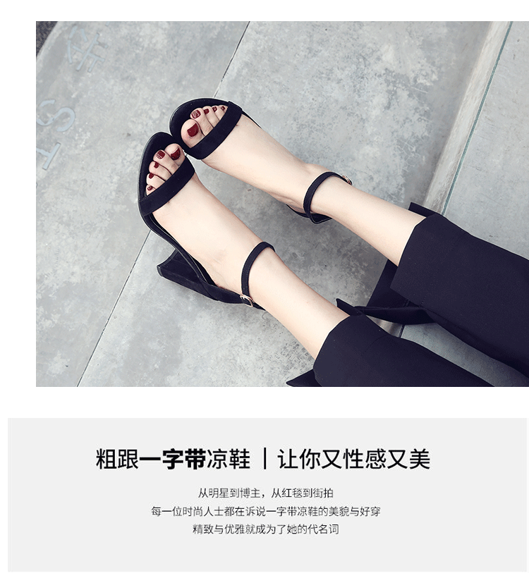 一字扣带凉鞋女中跟学生夏2018新款百搭韩版粗跟罗马高跟chic女鞋