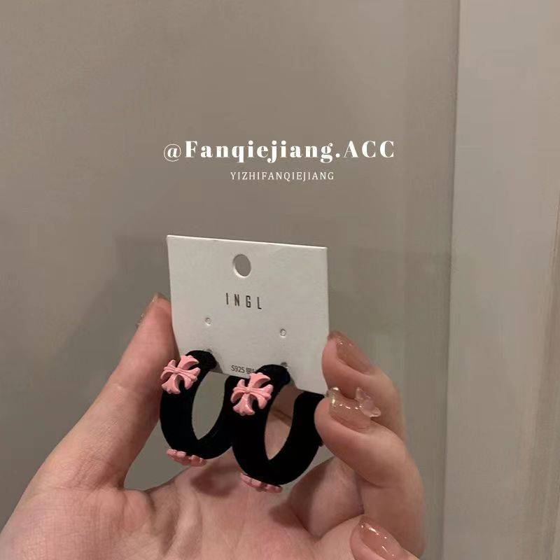 一只番茄酱粉色甜酷适合冬天的丝绒耳环小众设计感高级轻奢圆