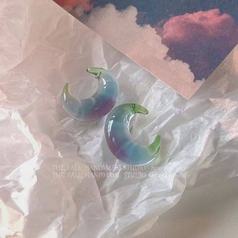 月牙湾银针通透晕染撞色耳钉女ins小众设计感蚊香盘耳夹少女耳饰
