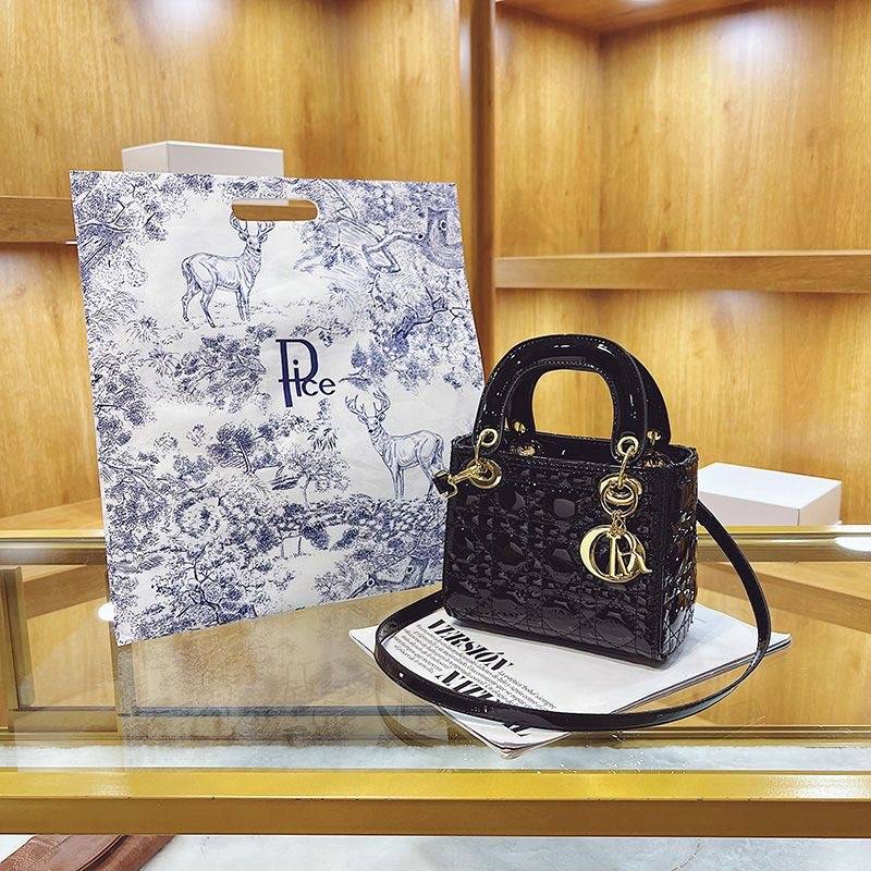 戴妃包包女新款时尚高级质感亮片漆皮手提包菱格绣线单肩斜挎女包