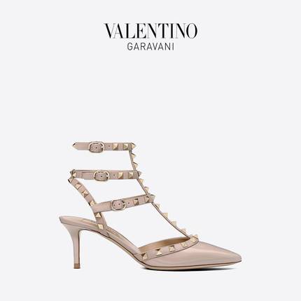 华伦天奴/VALENTINO GARAVANI ROCKSTUD 漆皮系带铆钉高跟鞋凉鞋