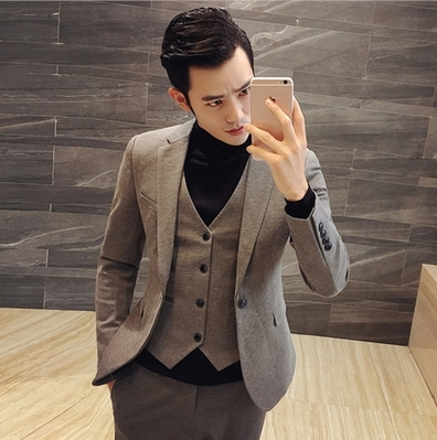 春夏季韩版男士修身一粒扣小西装套装发型师西服三件套新伴郎礼服