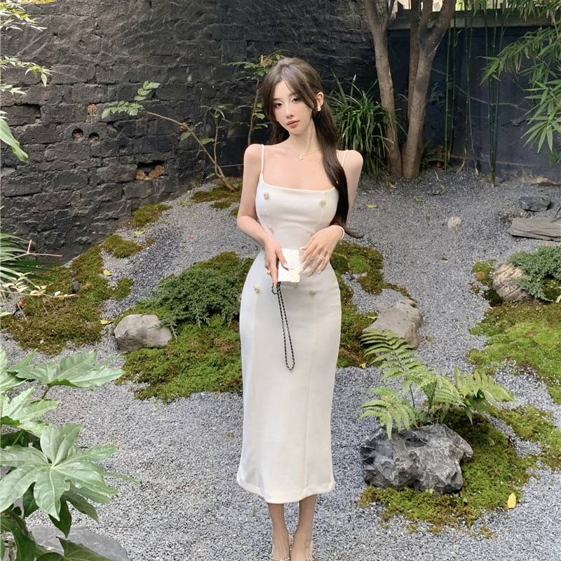 西蒙莱纳气质长裙子女装2023夏季新款法式小众名媛包臀紧身吊带连衣裙