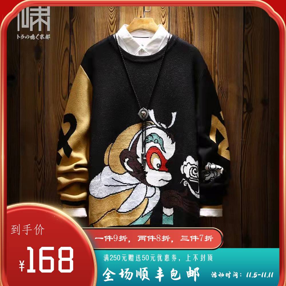中国风复古孙悟空短袖T恤男夏季宽松大码港风中学生国潮体恤上衣
