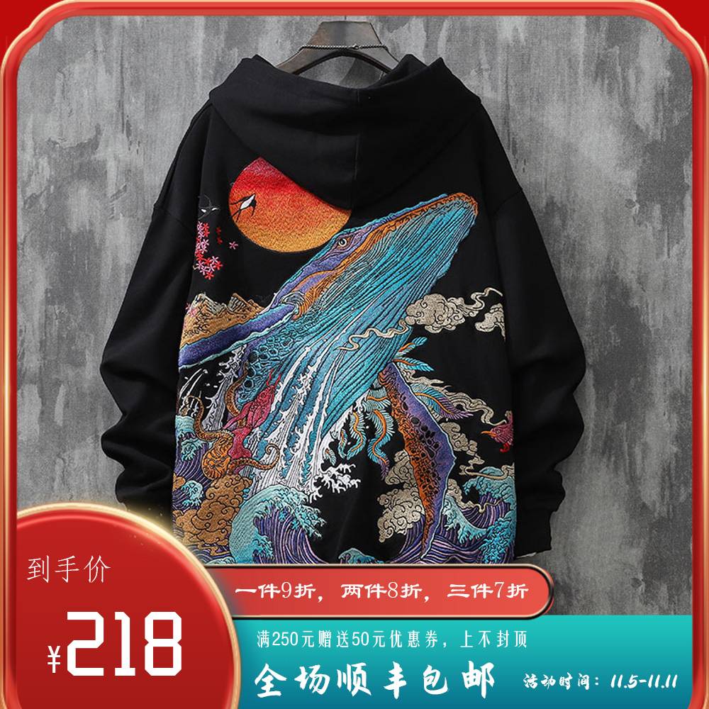 鲲鹏重磅刺绣连帽卫衣男秋冬款宽松纯棉潮流国潮中国风男装帽衫