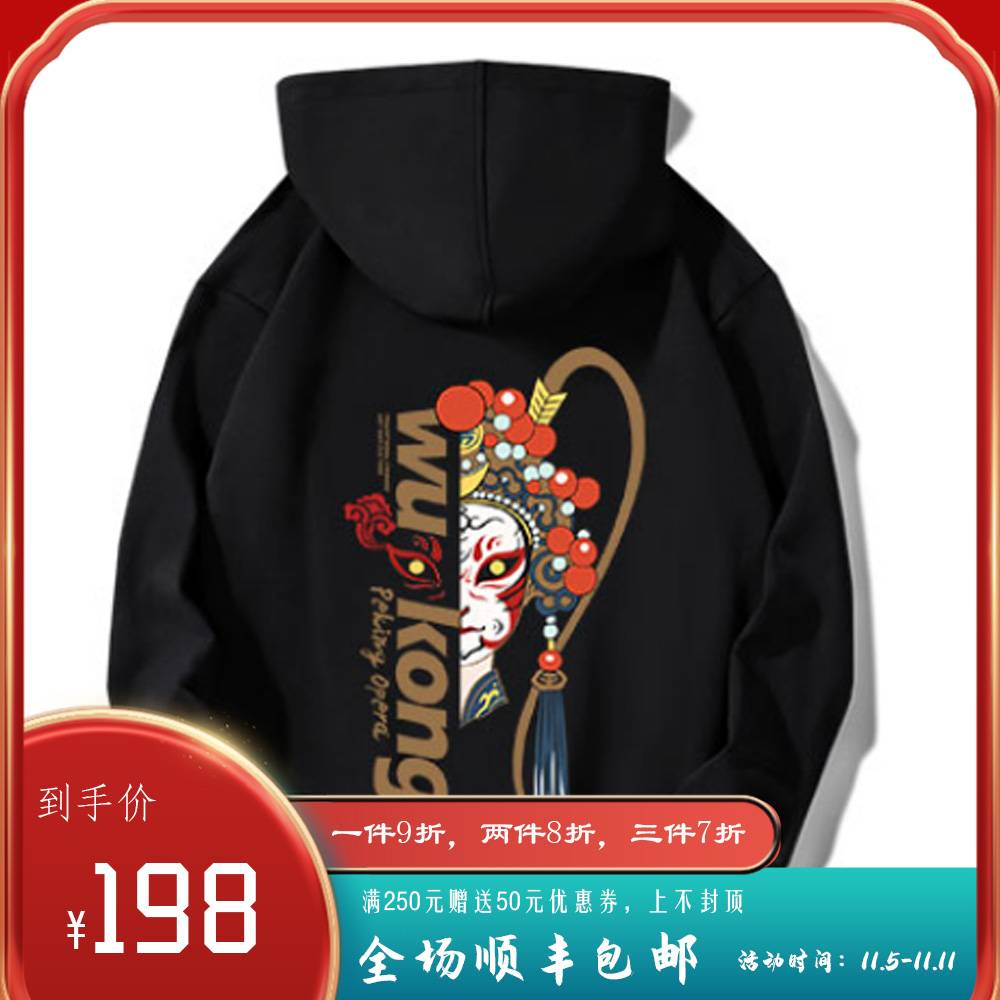 2021新款男士国潮卫衣男连帽中国风脸谱情侣潮牌男装春季红色外套