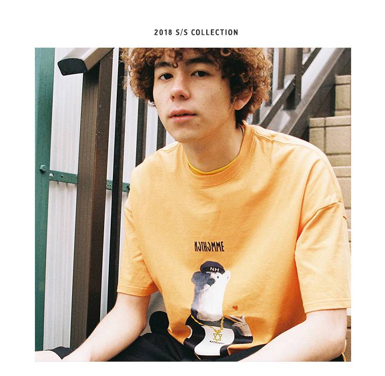 全国包邮NOTHOMME潮牌卡通数码小熊印花橘色半袖T恤男情侣款宽松版短袖tee