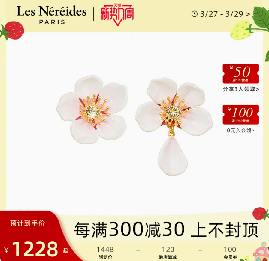 Les NereidesHanami樱花白色樱花吊坠耳环手工ins耳钉花耳夹