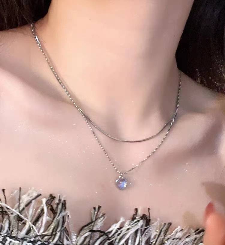 cc绘瑾6 .18大促新品双层月光爱心项链女甜酷风辣妹颈链小众轻奢高级感锁骨链