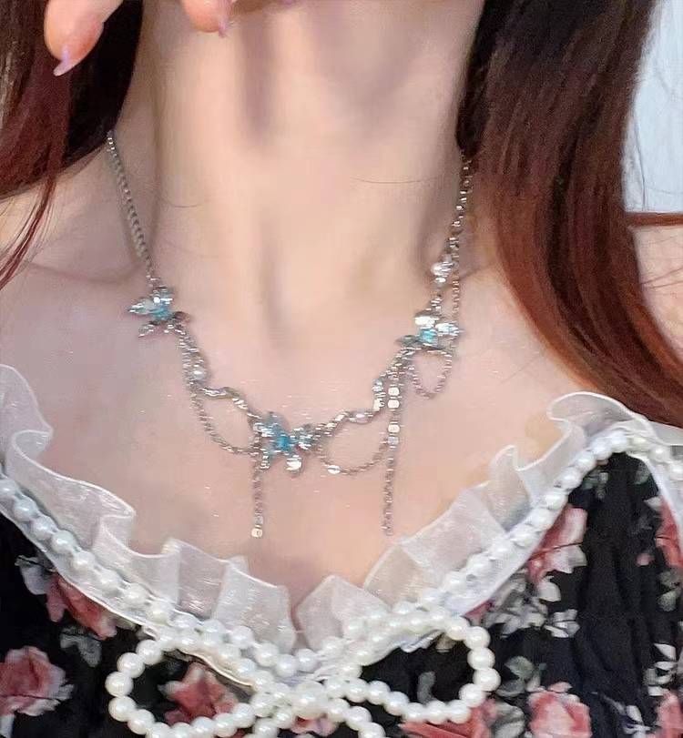 cc绘瑾6.18大促液态蝴蝶流苏项链女夏季2023年新款小众配饰甜酷锁骨链潮