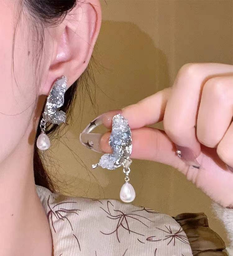 cc绘瑾6.18大促精致水晶蝴蝶翅膀珍珠耳钉女潮高级感耳环2023年春季新款