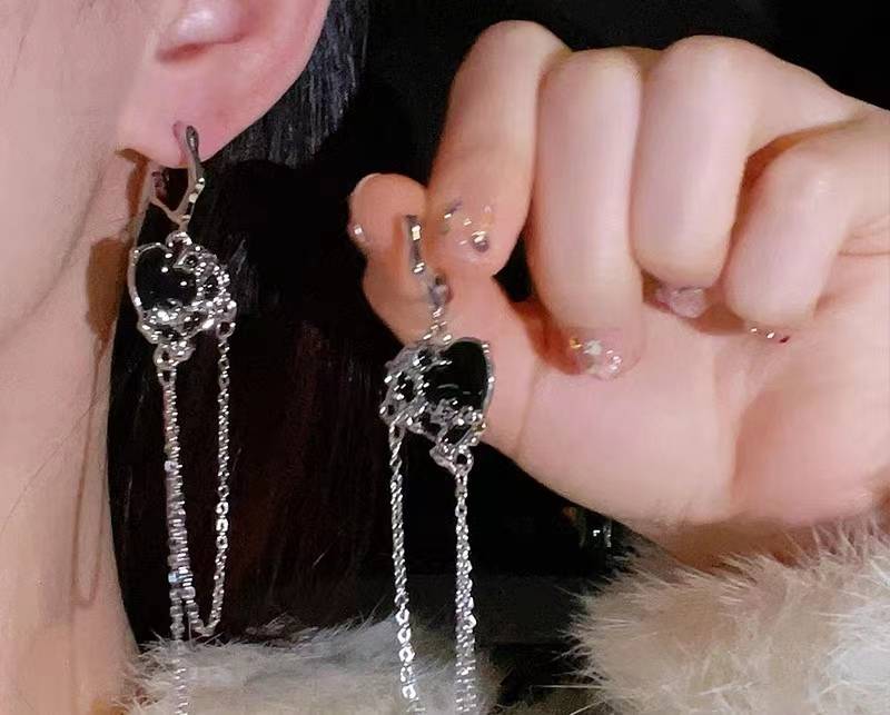 cc绘瑾6.18大促冷淡风黑色爱心流苏链条耳环女小众设计高级感