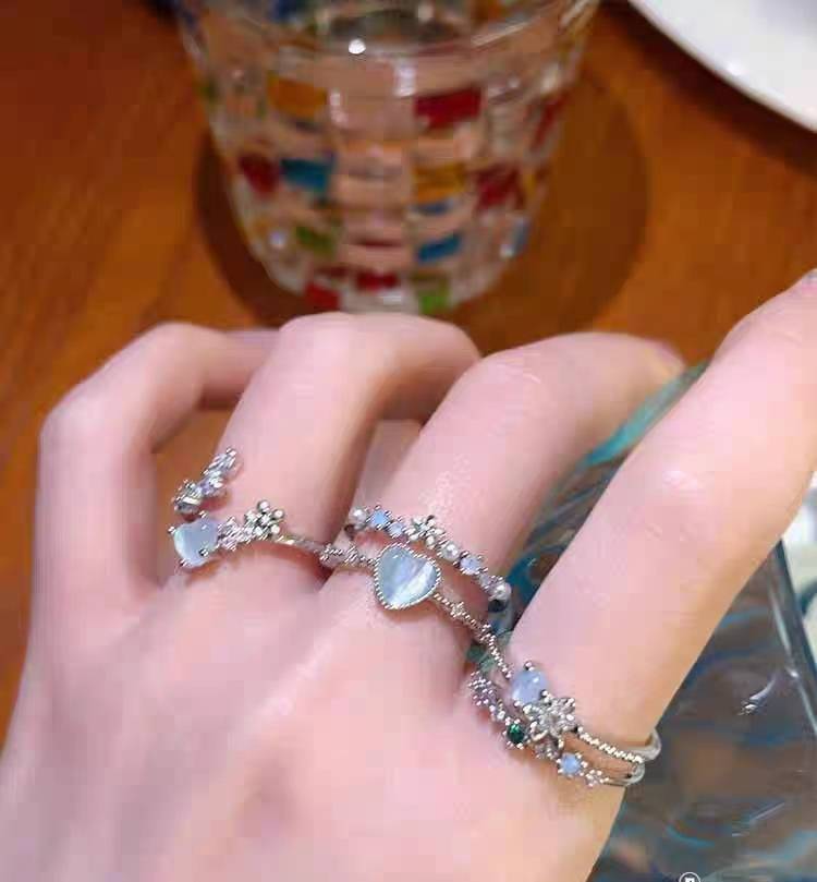 cc绘瑾月光猫眼爱心花朵戒指女轻奢小众设计高级感食指戒开口潮