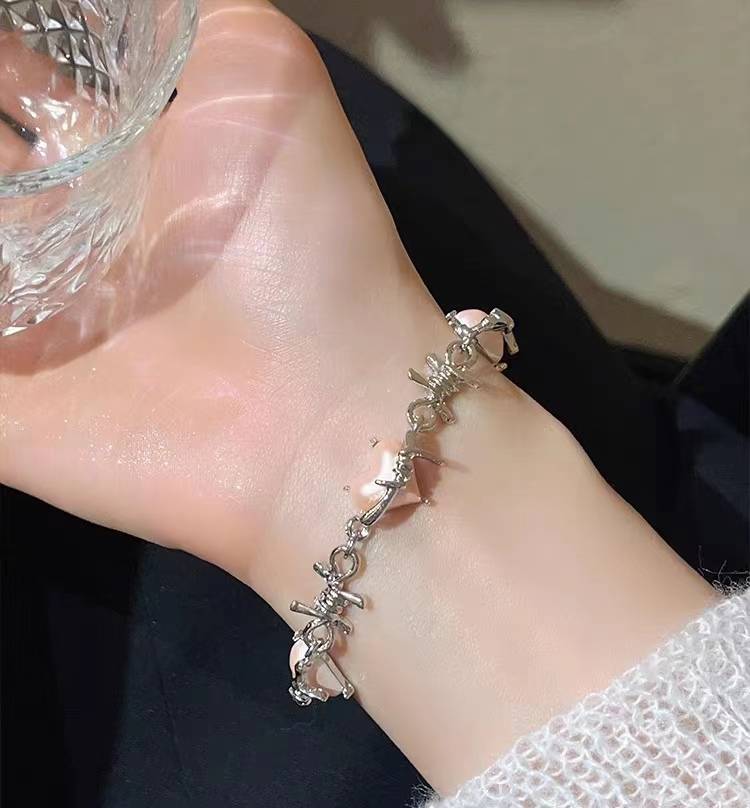 cc绘瑾小众设计粉色爱心荆棘手链女ins甜酷辣妹Y2K亚文化手饰