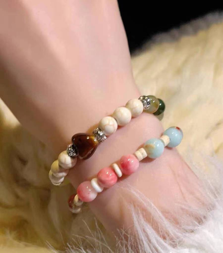 cc绘瑾复古中式民族风渐变玉髓天然石串珠编织手链小众古着手串