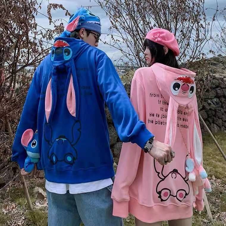 史迪仔情侣装卫衣男女可爱耳朵oversize