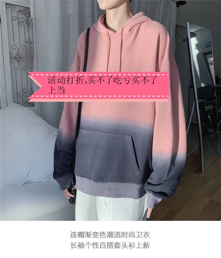 春季新款日系休闲男士渐变色卫衣宽松连帽打底套头衫青年时尚上衣