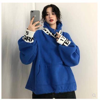 2018秋冬新款韩版个性学院宽松套头高领字母卫衣女学生