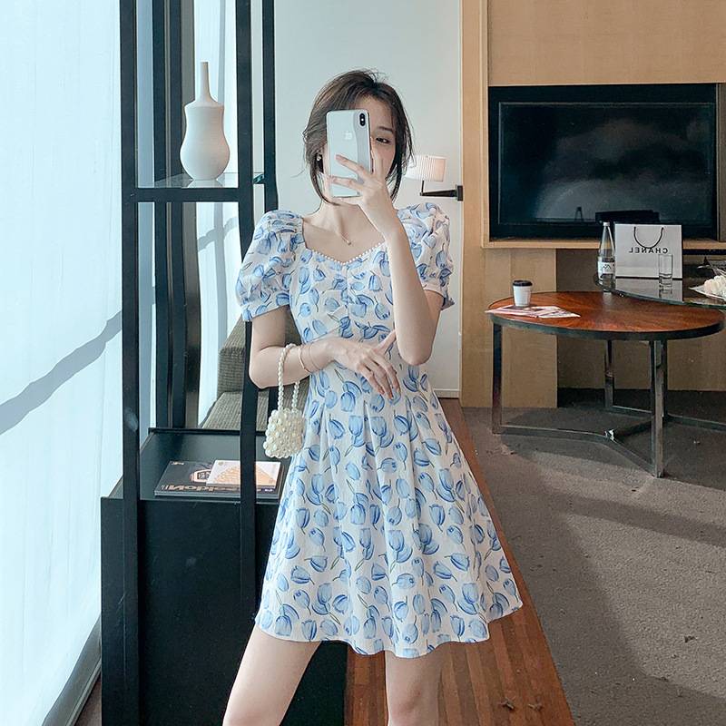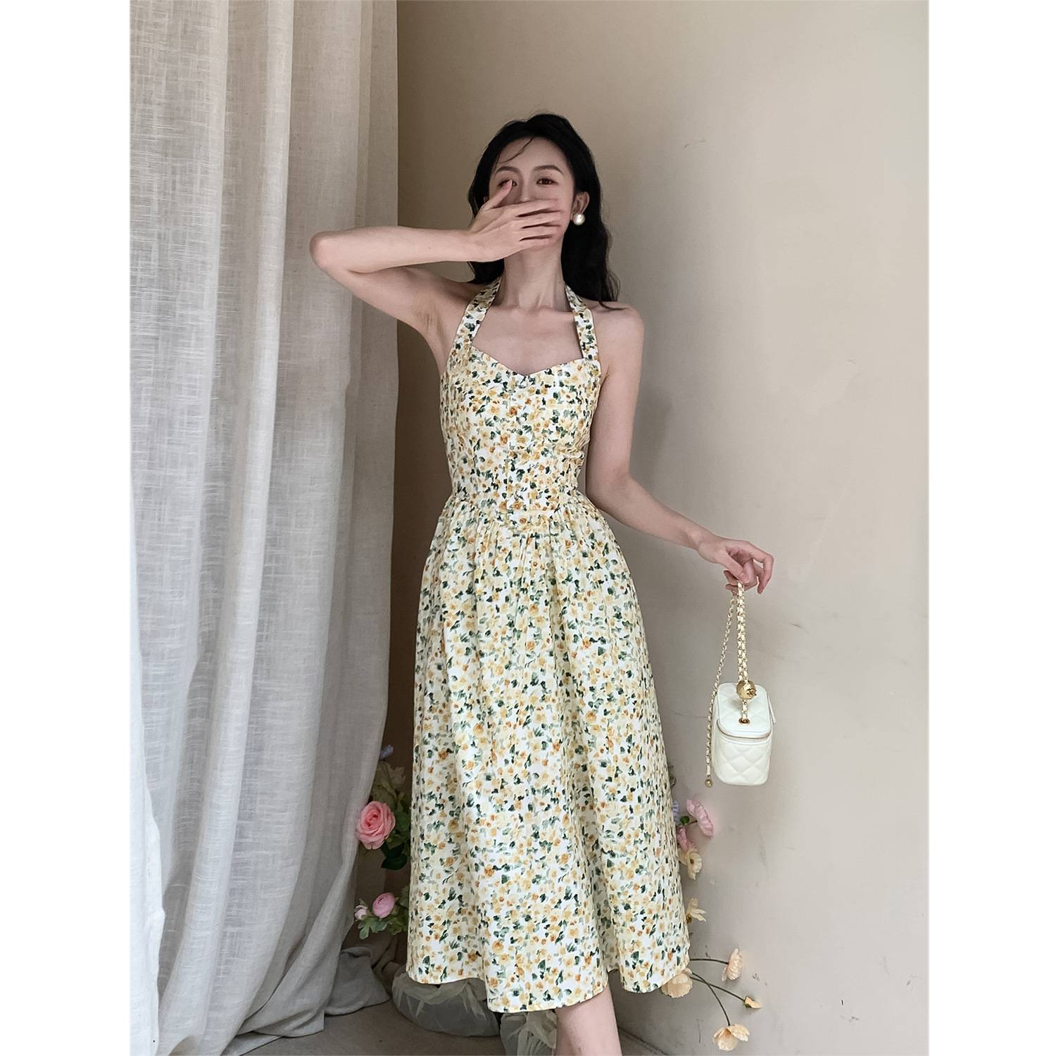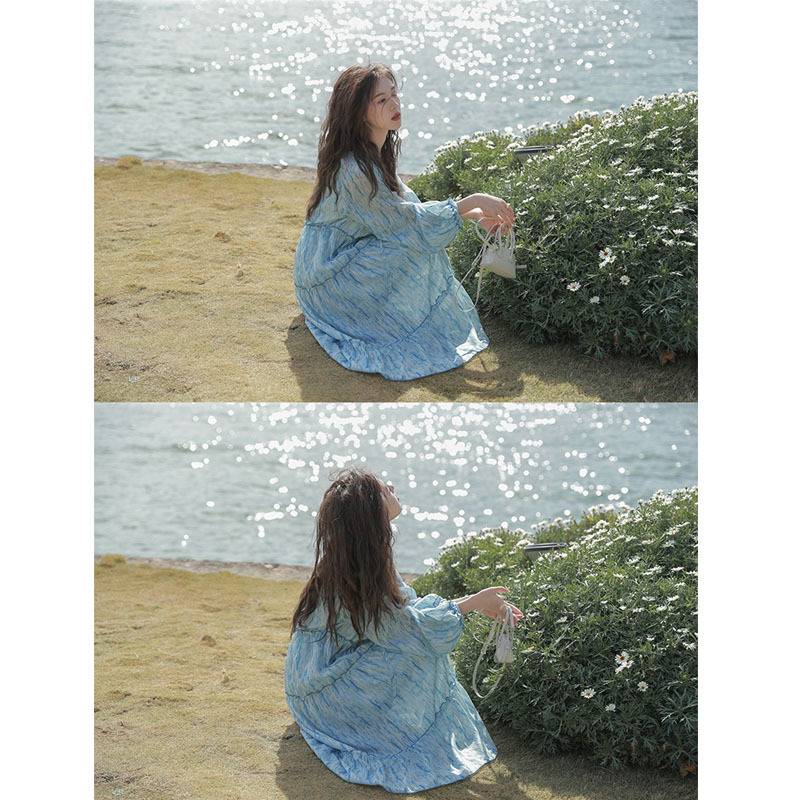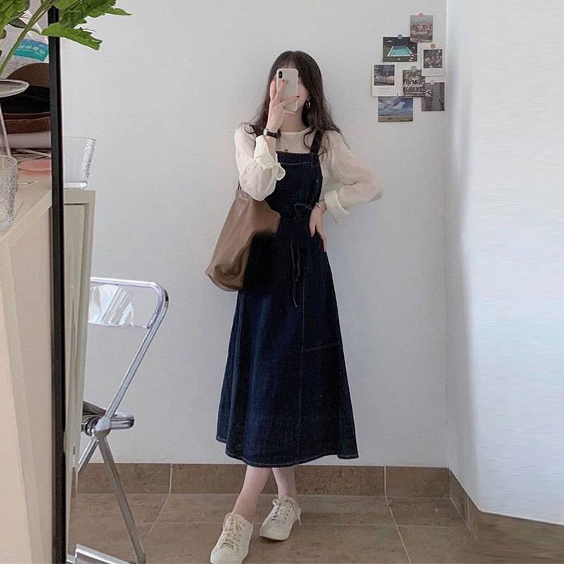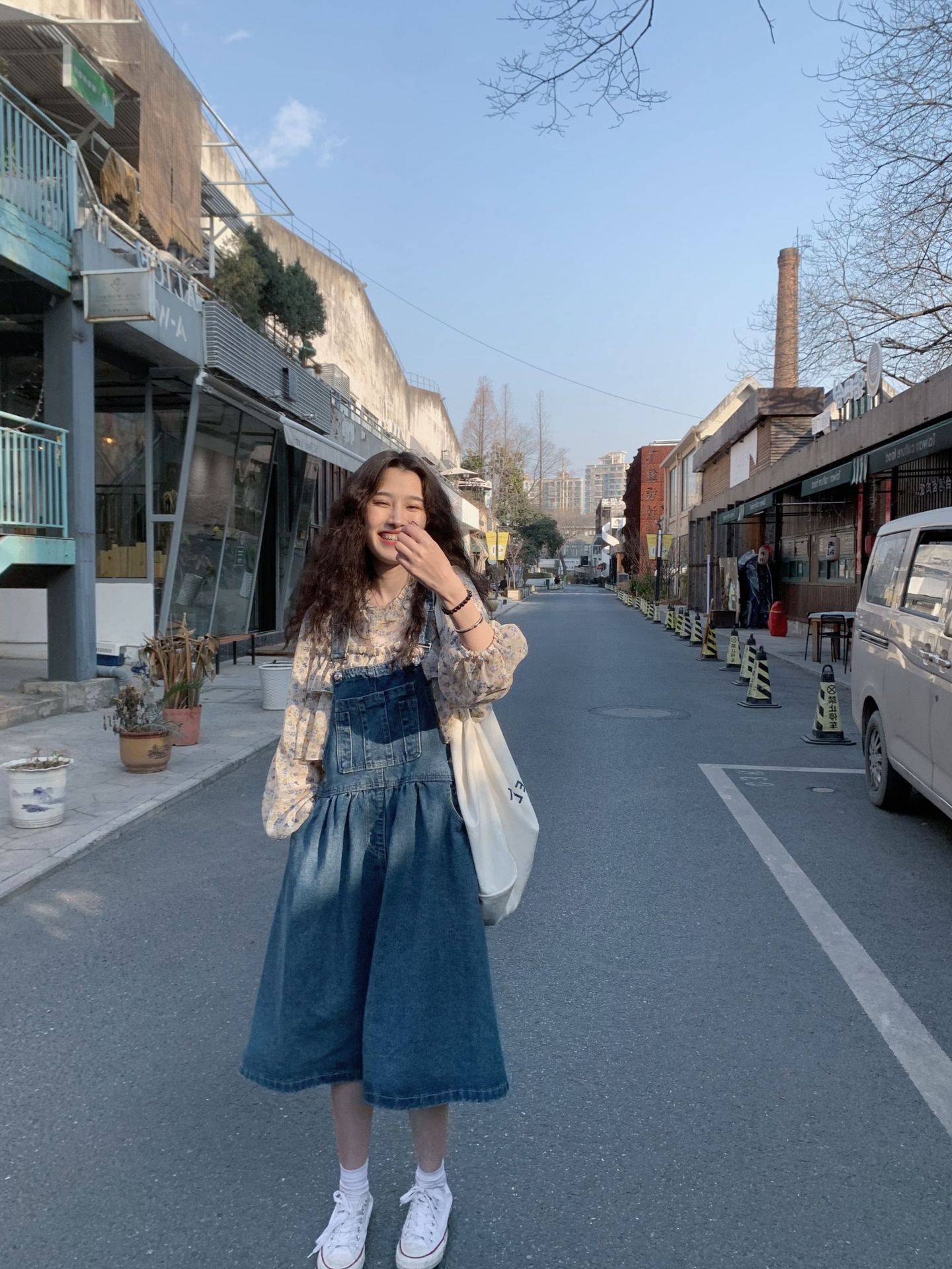 早春裙子chic2022年新款春款蓬蓬裙牛仔背带连衣裙夏季女装