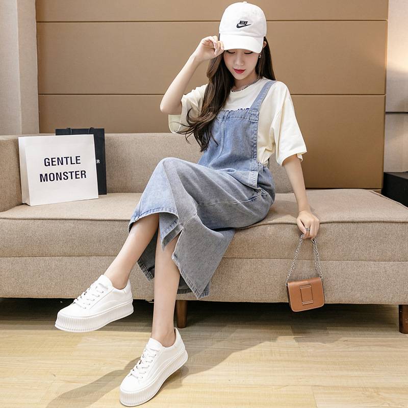 春秋新款宽松休闲大码胖MM牛仔背带裙中长款显瘦吊带连衣裙女夏季