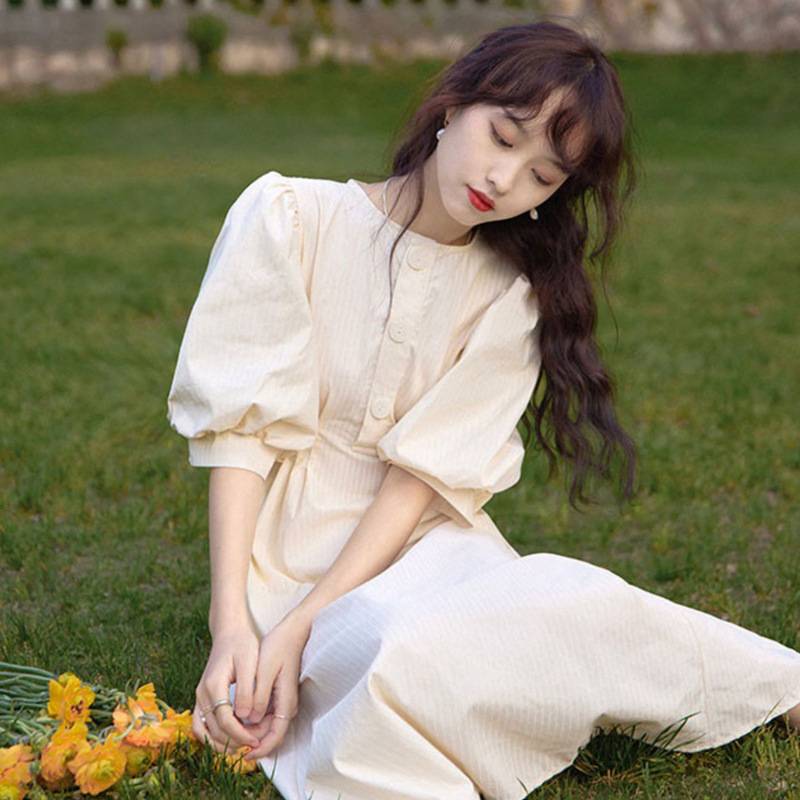 高定超乖chic初恋复古温柔御姐冷淡风感棉麻衬衫连衣裙子女夏