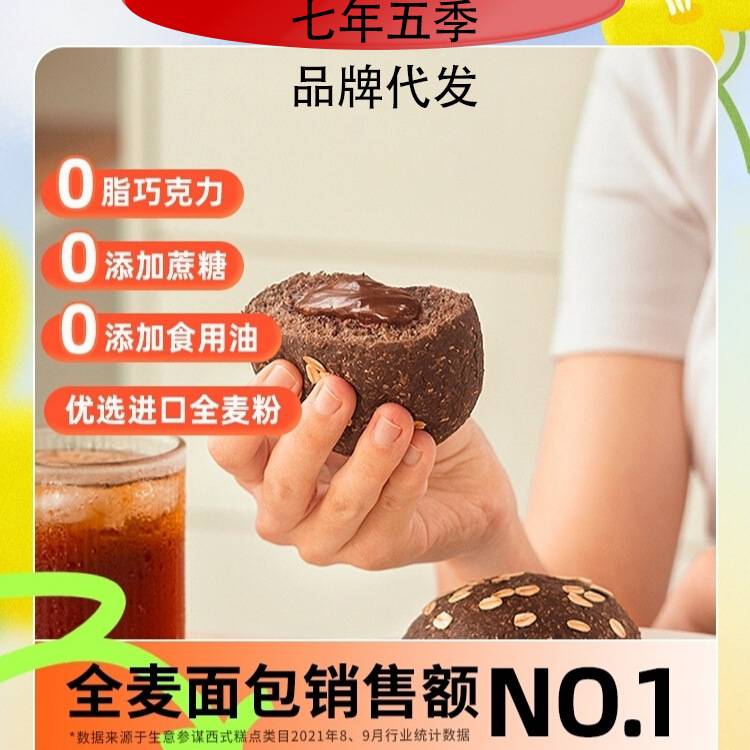七年五季巧克力全麦面包健康休闲小吃零食超低脂精粗粮早代餐欧包