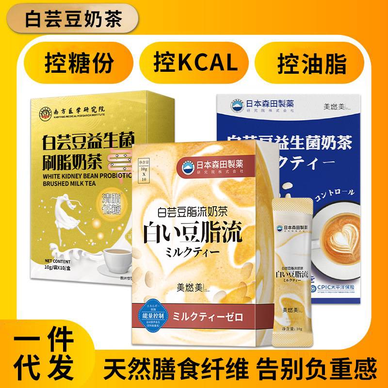 日本森田白芸豆脂流奶茶代餐粉阻油顺肠健身饱腹代餐奶昔冲泡奶茶