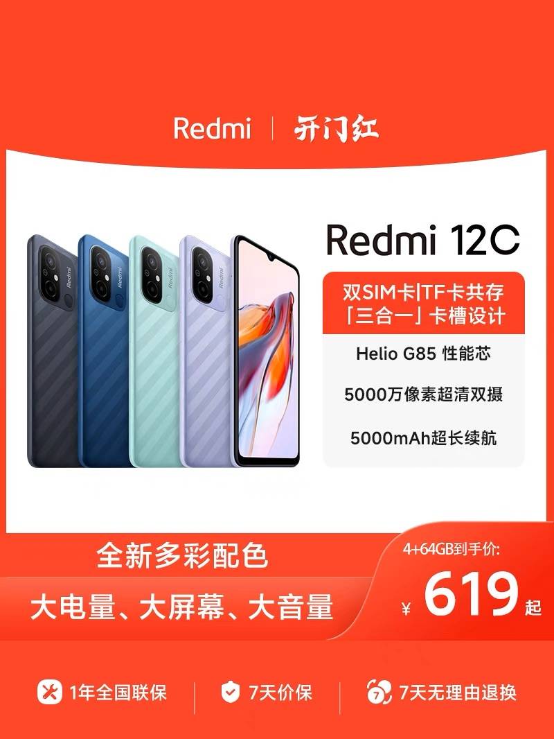 【立即抢购】Redmi 12C新品上市智能官方旗舰店红米小米手机大音学生老年备用机老人百元机12c