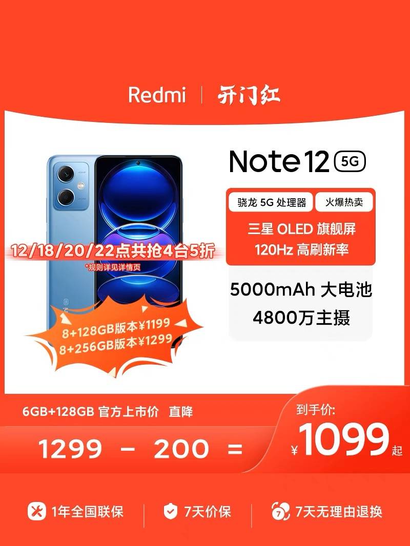 【指定整点抢五折】小米红米Note 12 5G 新品OLED屏幕智能红米手机官网花小家官方旗舰店note12