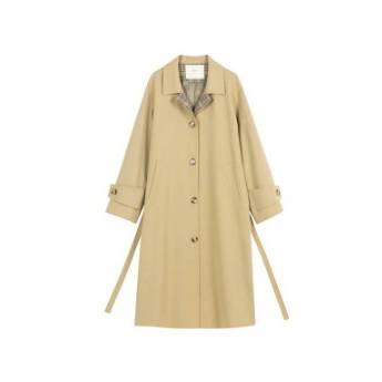复古卡其色宽松格纹拼接风衣外套女中长款卡其色风衣外套女春季小个子韩系中长款高级感大衣英伦风
