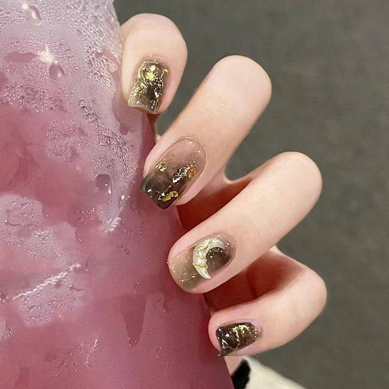 bulingbuling拿铁烤奶穿戴甲拉花爱心晕染美甲贴片