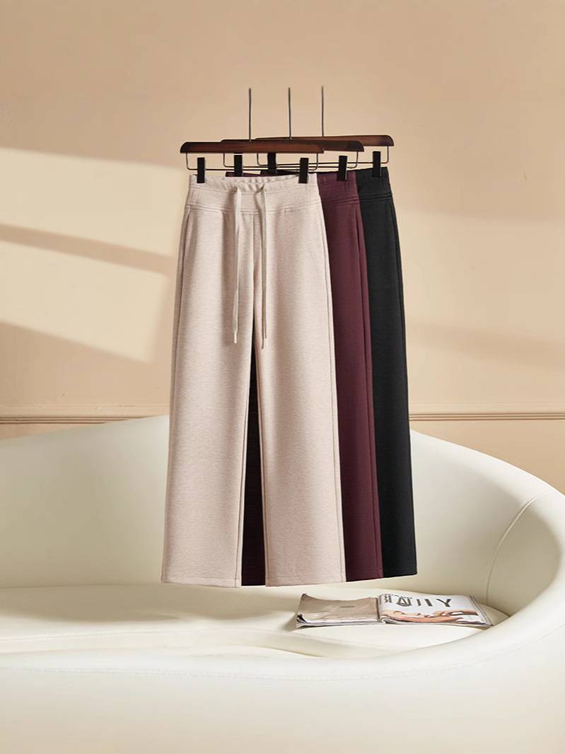 酒红色窄版直筒垂感裤子女秋冬厚款阔腿裤呢子西装裤新款直筒长裤