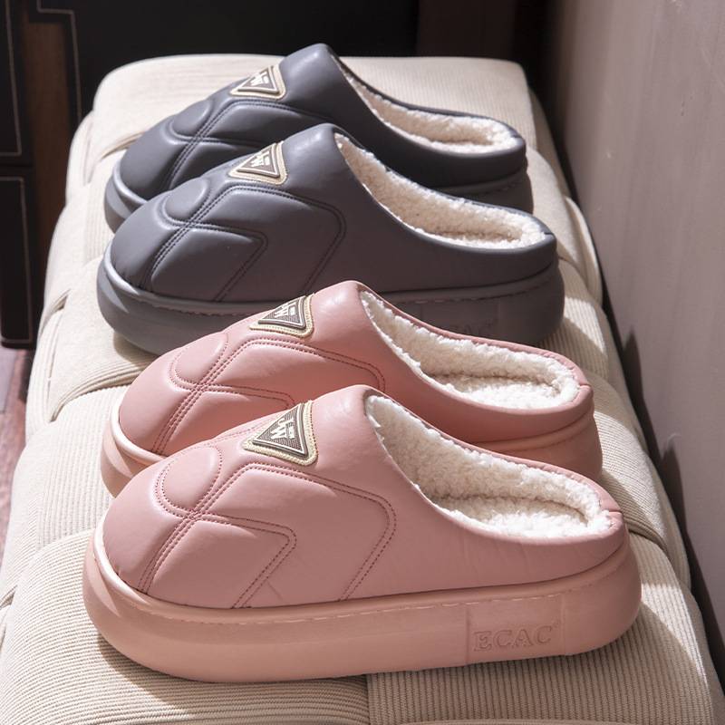 新款防水棉拖鞋女秋冬季情侣居家用厚底防滑加绒保暖舒适棉拖鞋男